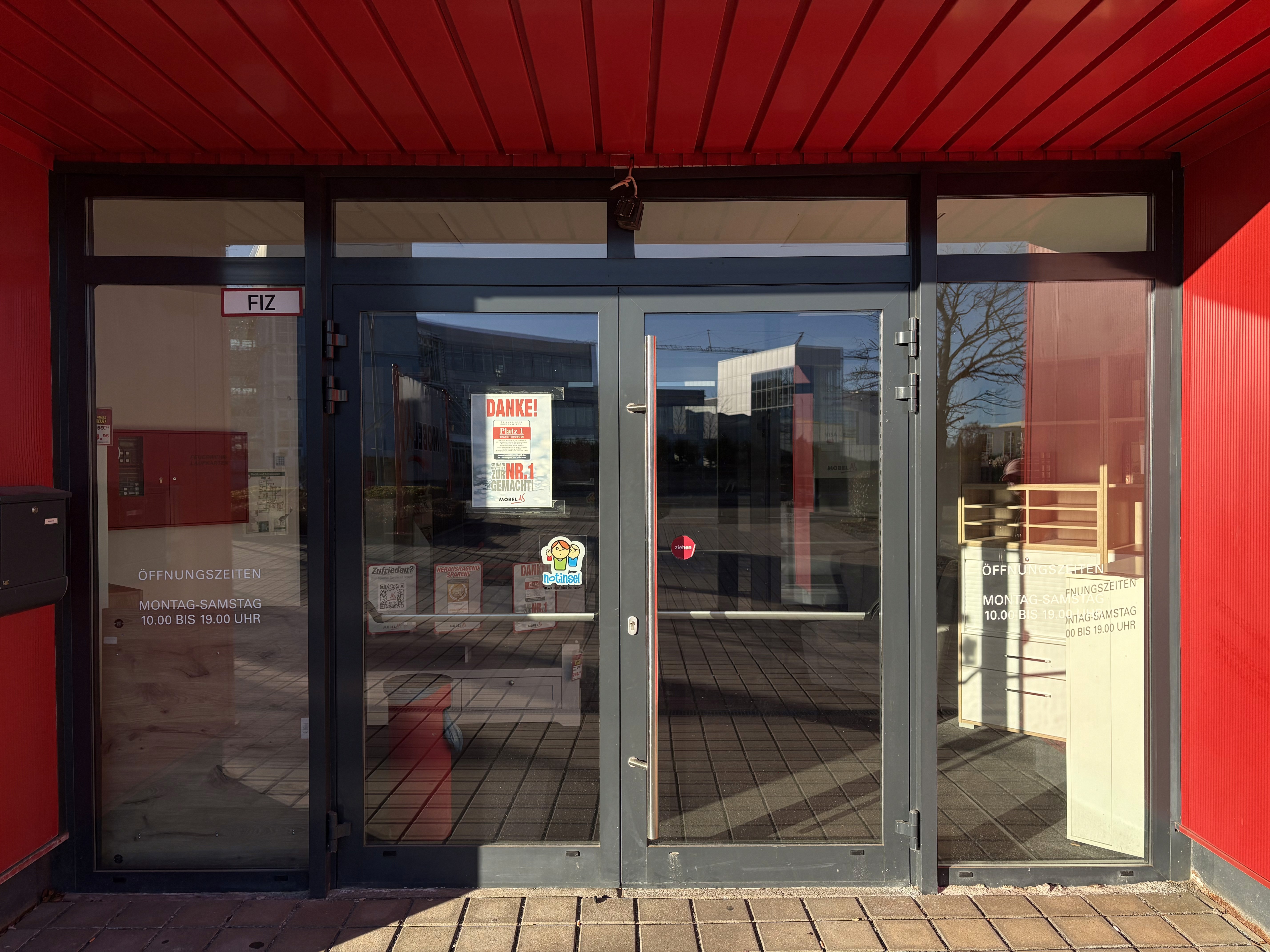 Eingangsbereich und Fensterlösungen für ein Gewerbeobjekt mit hoher Frequentierung.